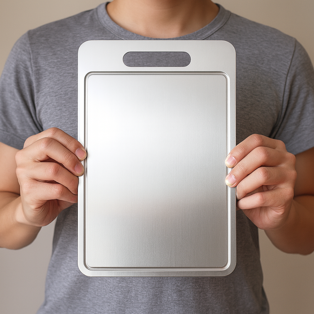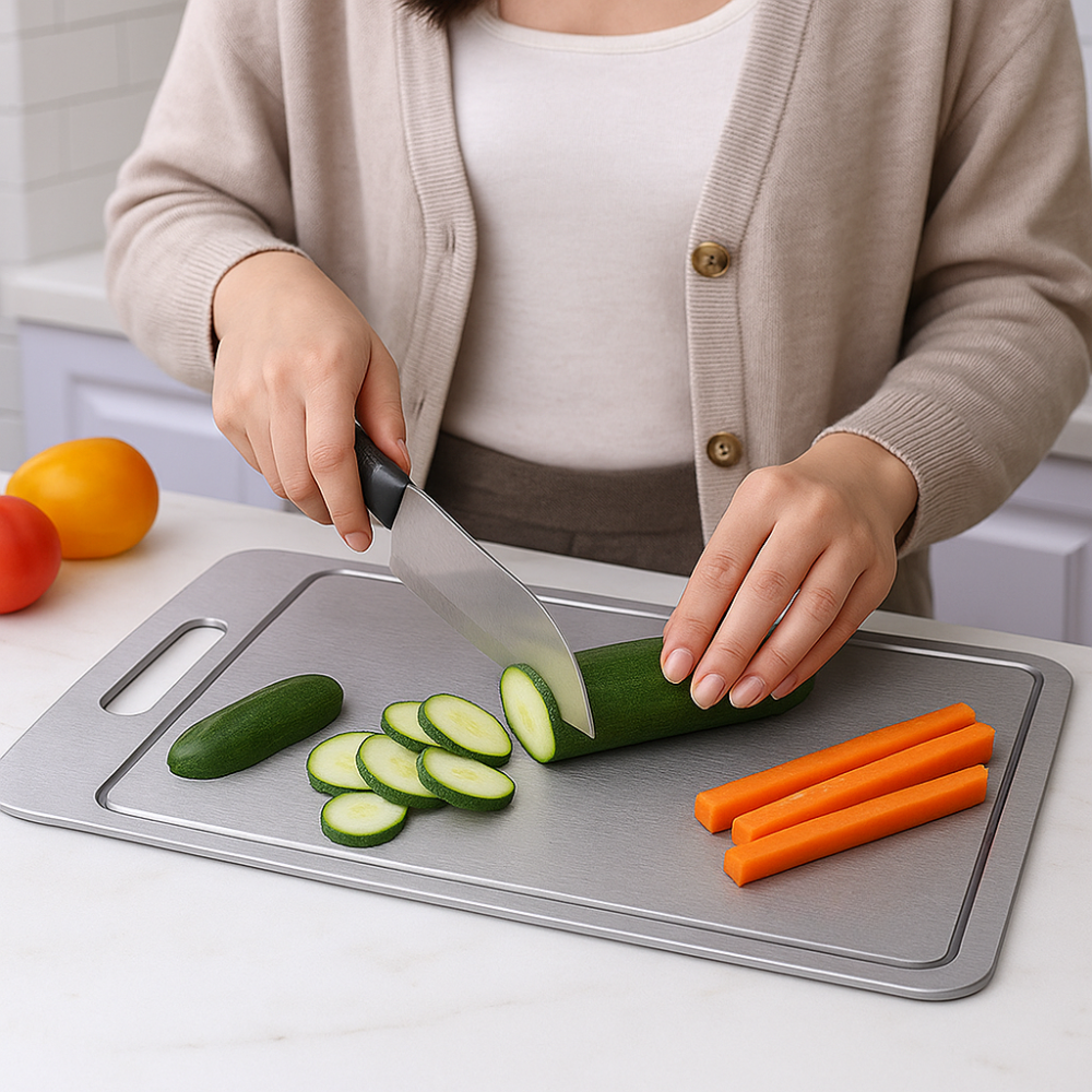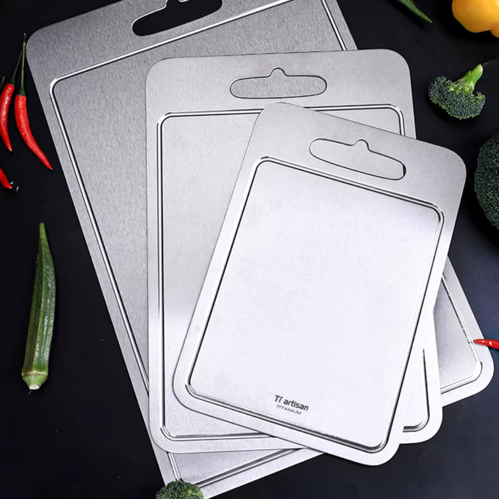 Titan ist extrem hart und widerstandsfähig . Es zieht sich nicht, splittert nicht und bleibt selbst bei täglichem Schneiden glatt und sauber. Dein Brett sieht auch nach Jahren noch aus wie am ersten Tag.